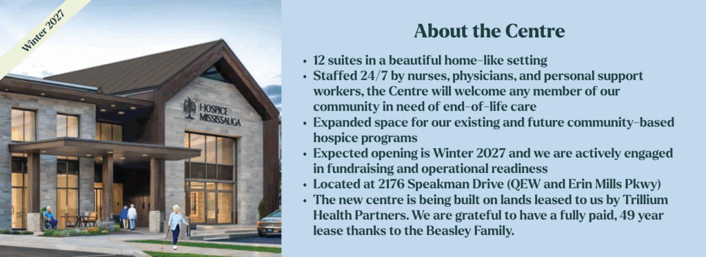 The Hospice Centre will be Mississauga’s first purpose-built space offering 12 care suites, space for wellness programs, counselling, and community connections.